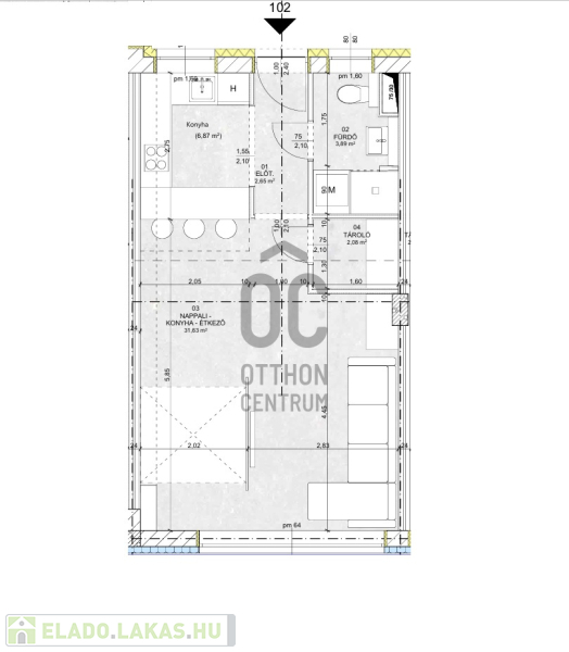 Ez az 1. emeleti lakás 40,25 nm-es, nappali-étkező- amerikai konyhás.