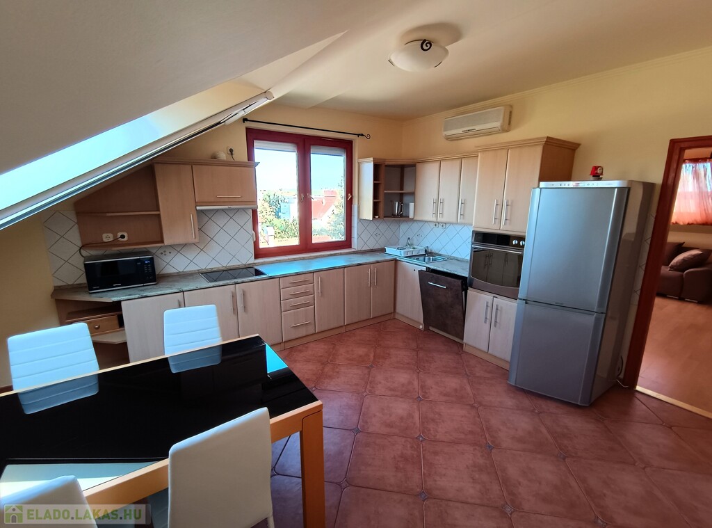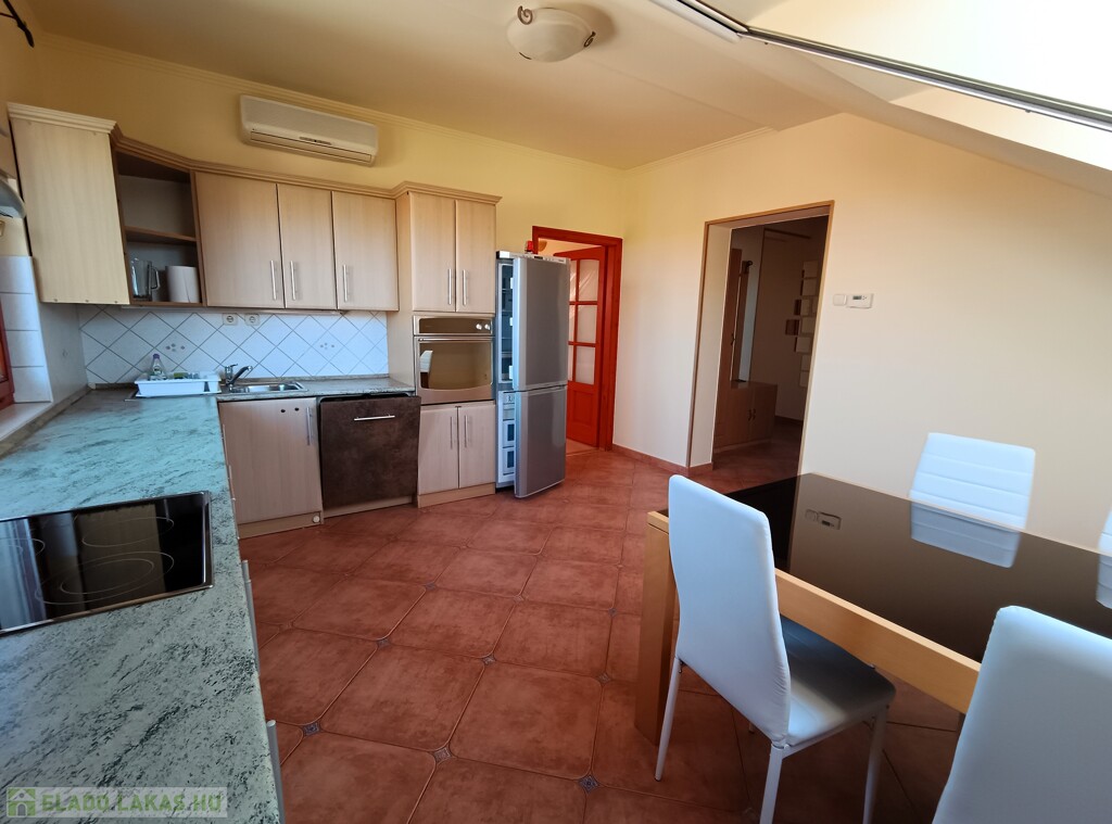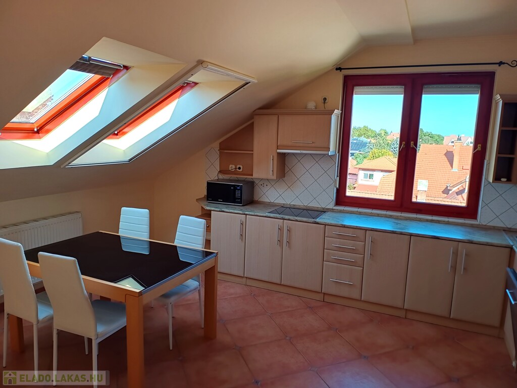 Debrecenben, Hatvan utcai kertben, csendes utcában eladó egy harmadik emeleti, tetőtéri, 74/54m²-es, 1 + 1 félszobás, nagykonyhás, jó állapotú téglaépítésű lakás!