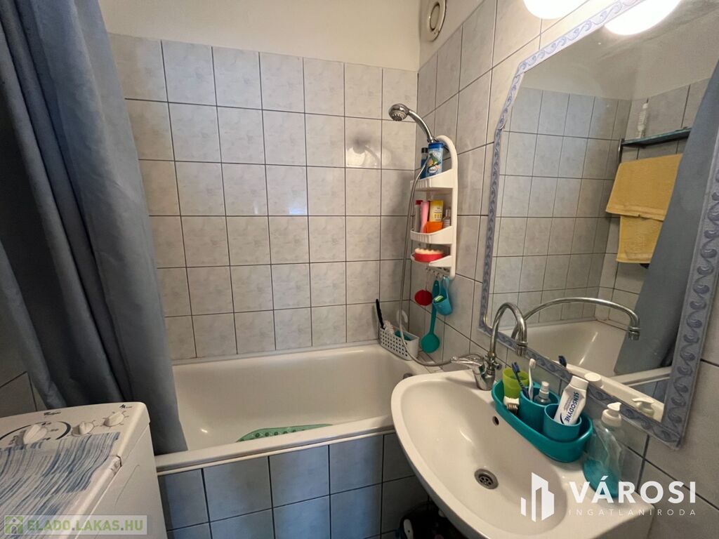 - **Tárolás:** Beépített szekrények gondoskodnak a praktikus tárolási lehetőségekről, emellett a lakáshoz közös tároló is tartozik.