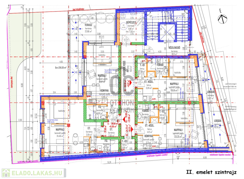 II. emelet 3/A. lakás 29 nm + 23 nm terasz:
