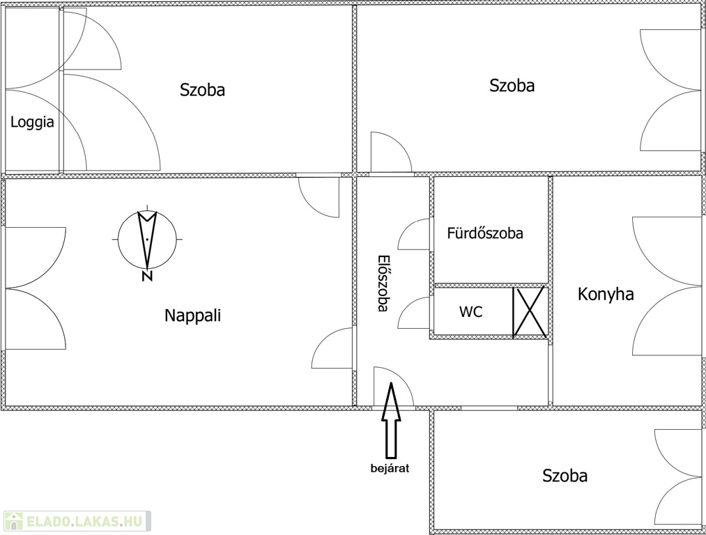 - Helyiségei: előszoba, konyha, nappali + 3 szoba, fürdőszoba, WC külön.