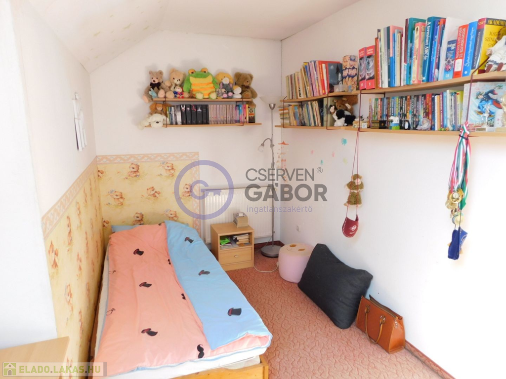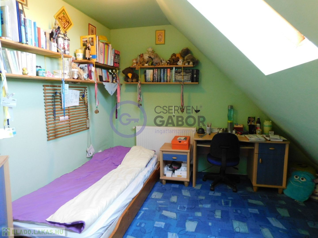 A felső szinten a gyerekszobák kaptak helyet, valamint egy tároló helyiség, ami egyben gardrób helyiségként is szolgál.
