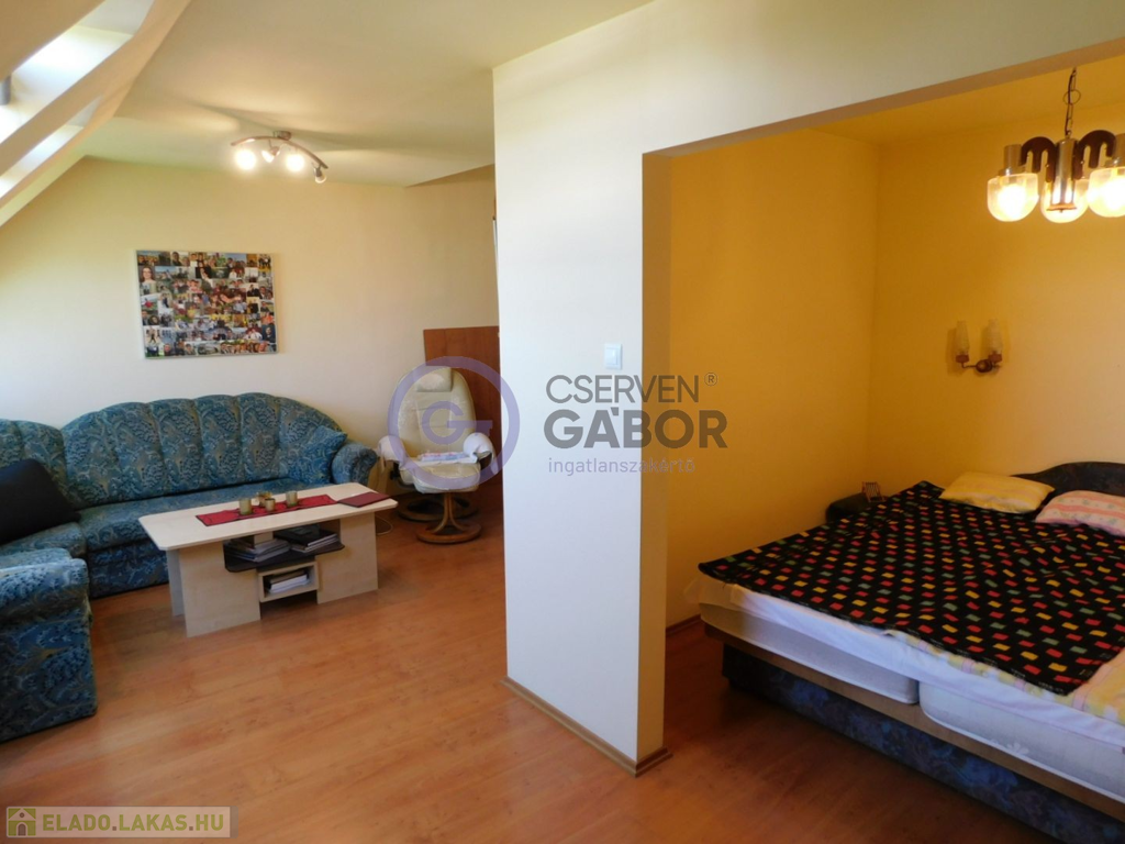Az eladásra kínált lakás a tetőtér beépítés jellegéből adódóan 90 m2-es bruttó alapterülettel, és 74 m2-es hasznos, nettó lakóterülettel rendelkezik, a két lakószintet egybevéve. A beépítés során a lakások válaszfalait könnyűszerkezetes technológiával készítették, így a lakótér elrendezése igény szerint átalakítható