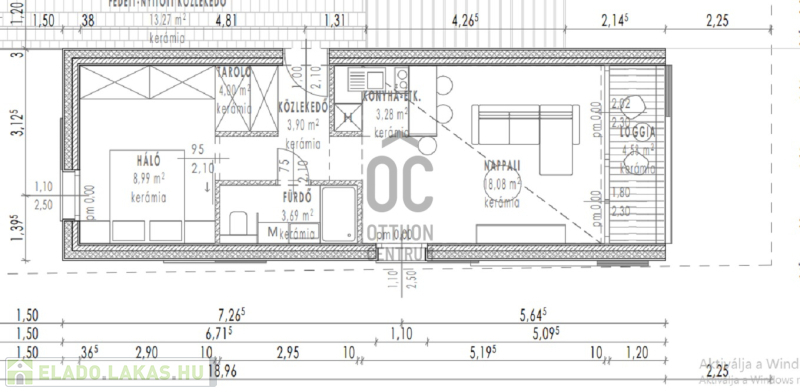- 42 nm - Nappali- amerikai konyha, hálószoba, fürdőszoba, tároló, 5 nm loggia