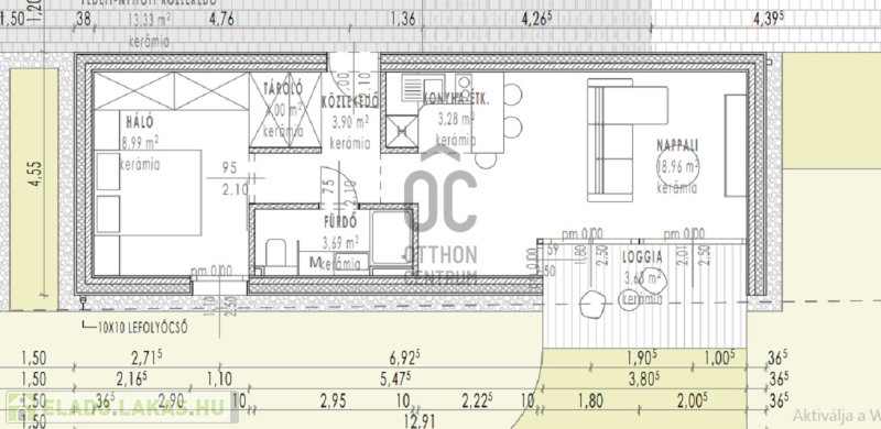 - 43 nm - Nappali- amerika konyha, hálószoba, fürdőszoba, tároló, 4 nm loggia,
