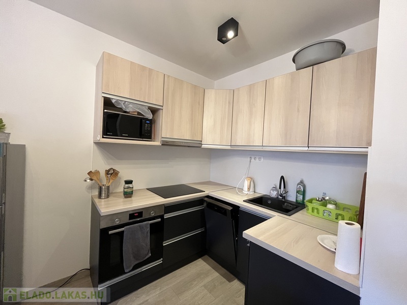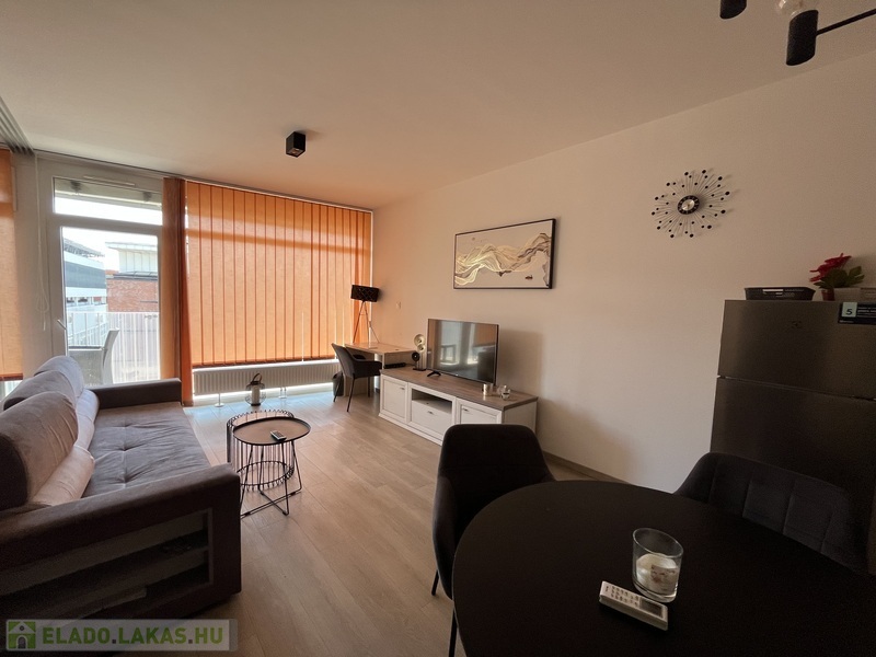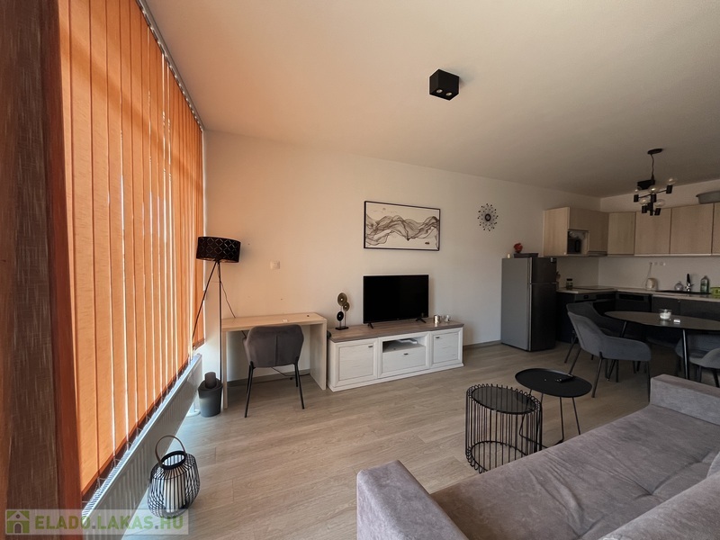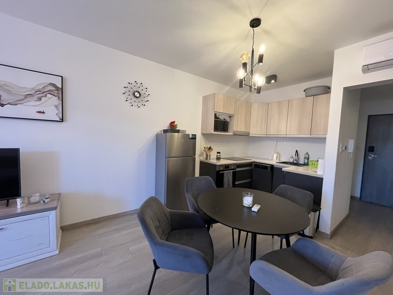 Modern és Praktikus Elrendezés: Az amerikai konyhás nappali tágas és világos teret biztosít a mindennapi élethez és a vendégfogadáshoz. Az egy külön szoba pedig nyugodt pihenést garantál.