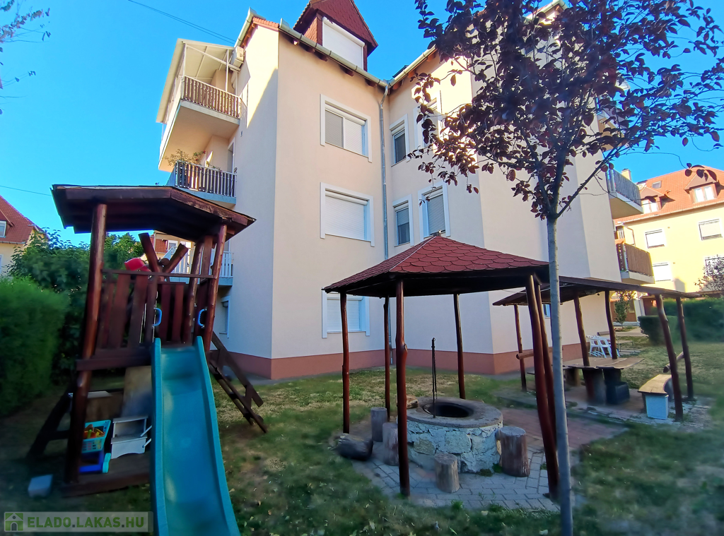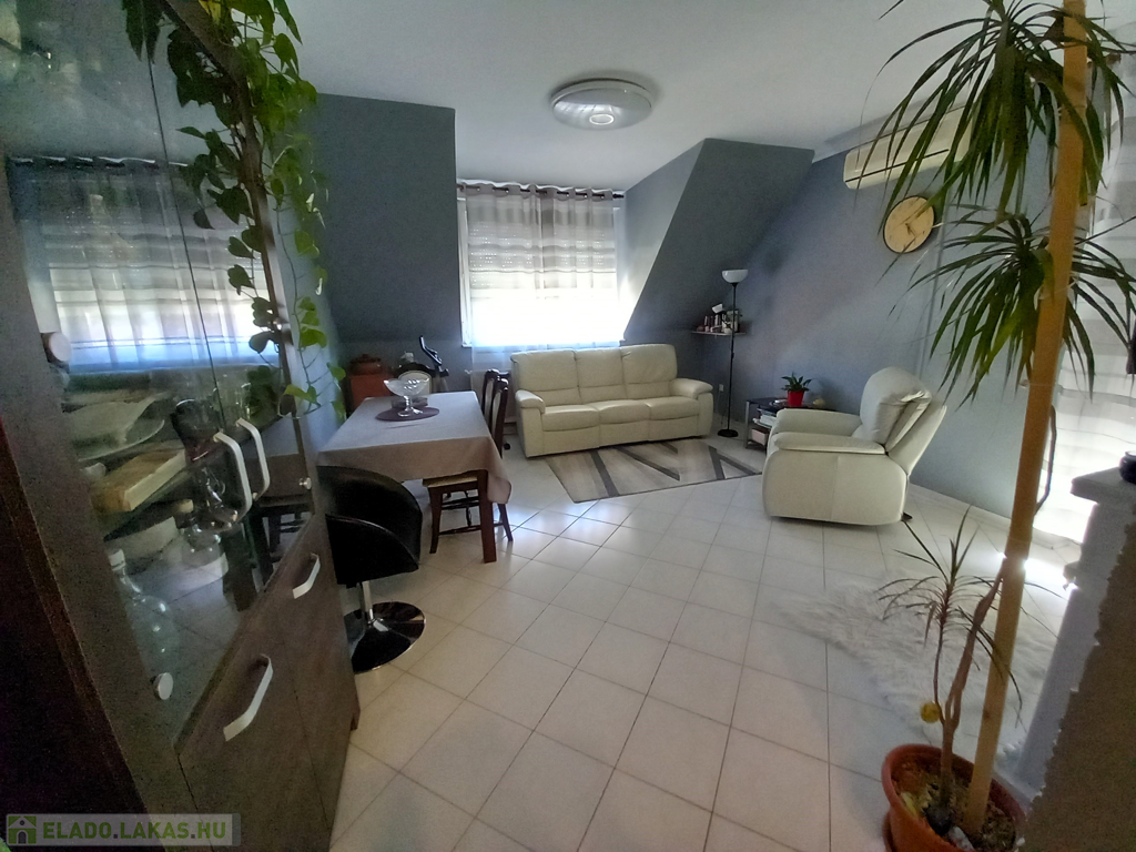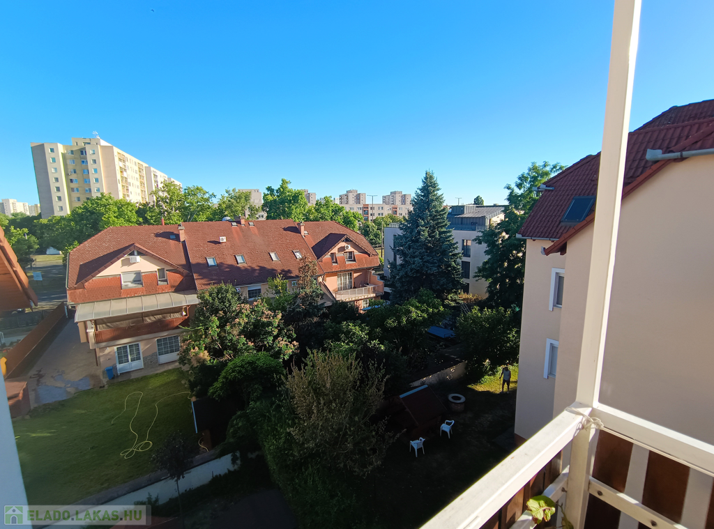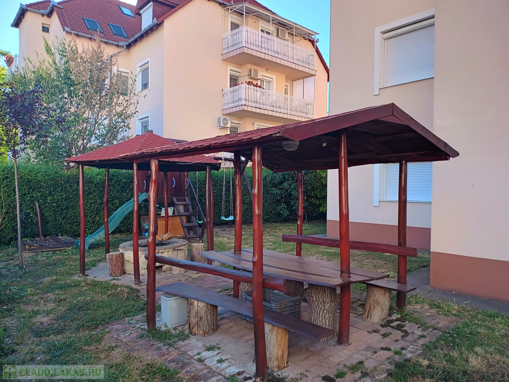 A négyszintes, háromemeletes téglaépítésű társasház 1999 szeptemberében került átadásra. Az ingatlan a harmadik emeleten található, belső kétszintes, duplakomfortos és egy szép nagy nyugati fekvésű bő 10m²-es erkéllyel rendelkezik. Gyerekekkel, barátokkal kültéri kikapcsolódásra kiválóan alkalmas udvarán filagória, csúszda, hinta, főzőhely kapott helyett. A hozzátartozó 12m²-es garázs az ingatlan alatt helyezkedik el, ára 10 millió Forint, megvétele opcionális.