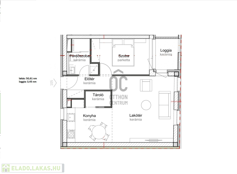 Ez az 2. emeleti lakás 49,47 nm-es, nappali-étkező-konyha +1 szobás, 6,03 nm-es loggiával. Nappali+ 2 szobássá alakítható.