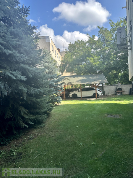 A társasház kis lakásszámú, egy emeletes épületben található, csendes, forgalomtól mentes utcában, a ház kertje füvesített, pihenőkert!