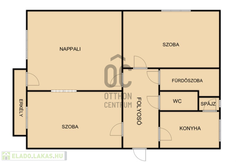 Tágas nappali ahonnan közvetlen kijárat van az erkélyre + 2 külön nyíló szoba