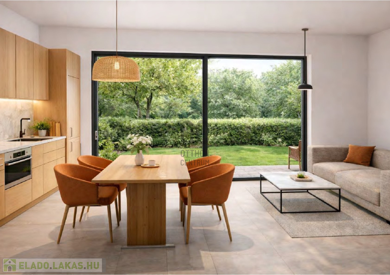 A földszinti lakások egyedi arculata a tágas nappali, melyet a teraszra nyíló hatalmas hőszigetelt nagy ablak borítja, így a természet mindig karnyújtásnyira van.