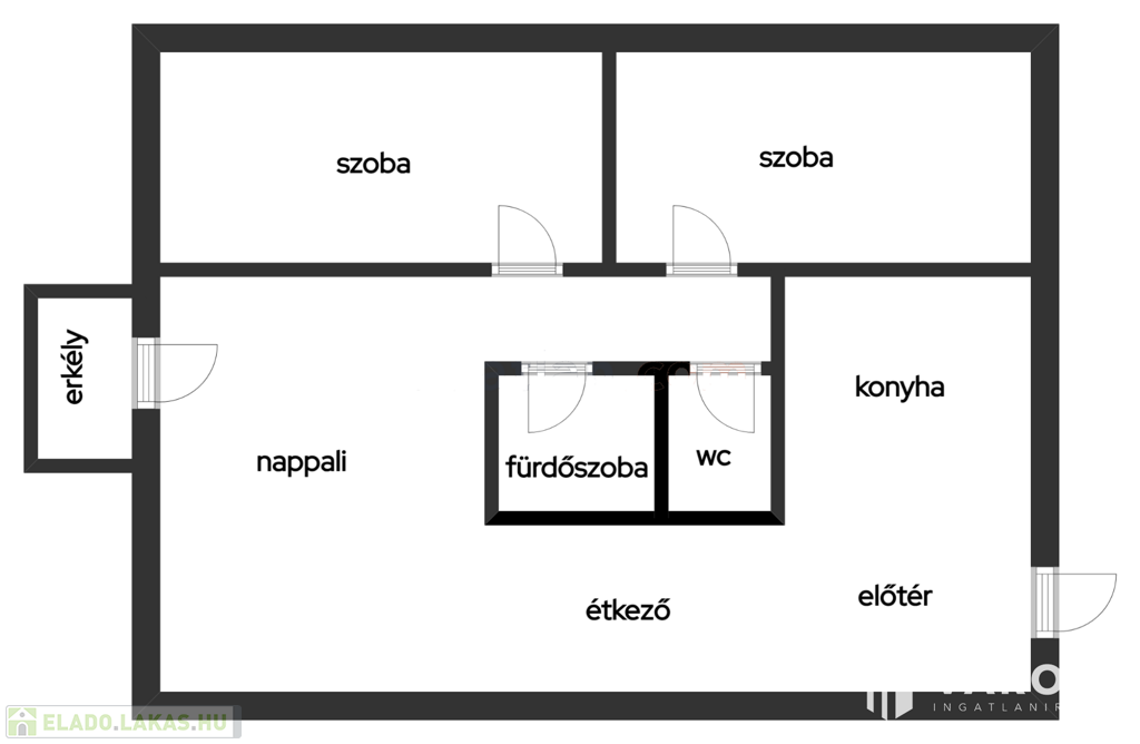 - Elrendezés: nappali + 2 külön nyíló szoba