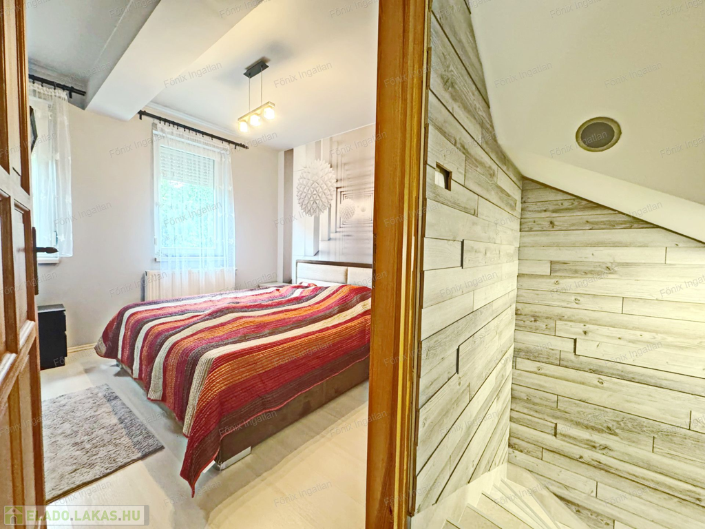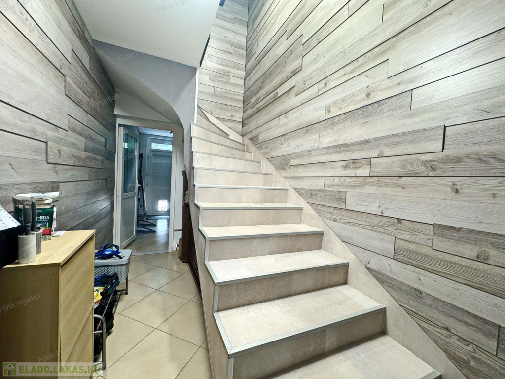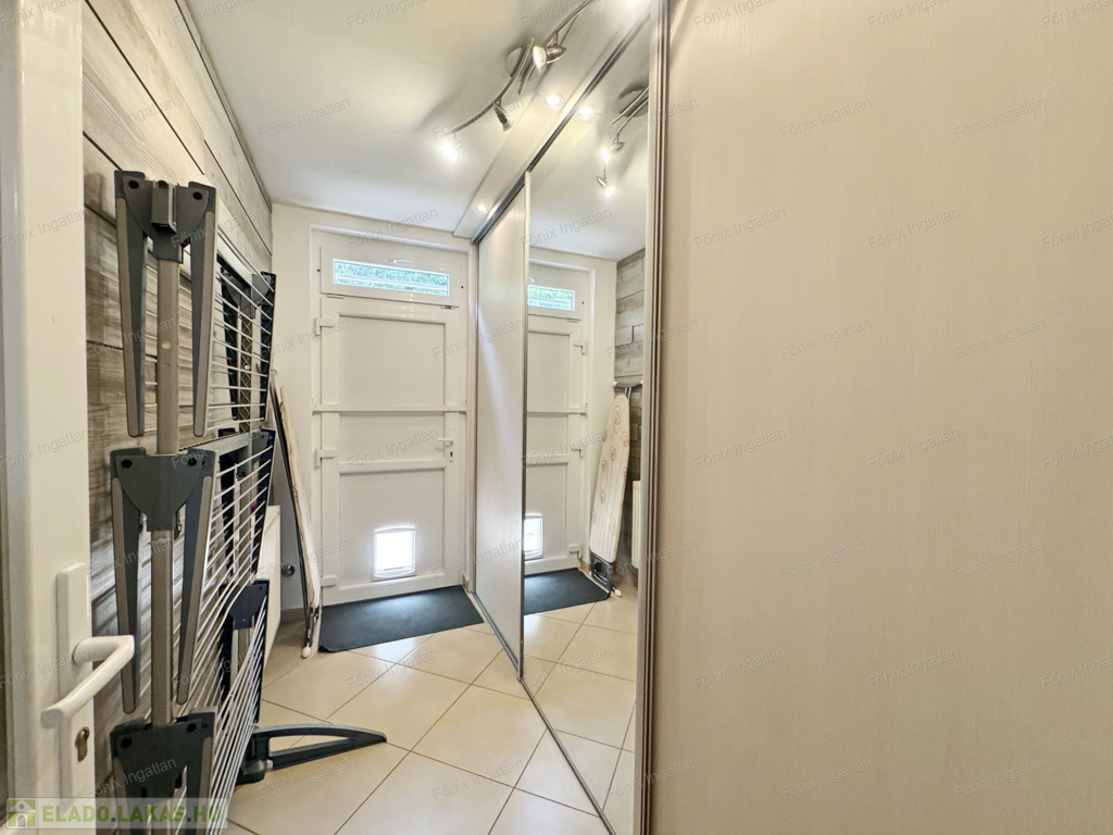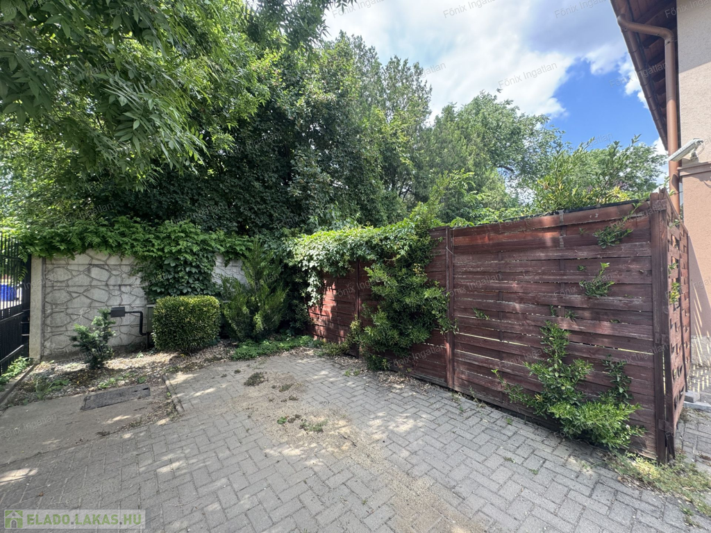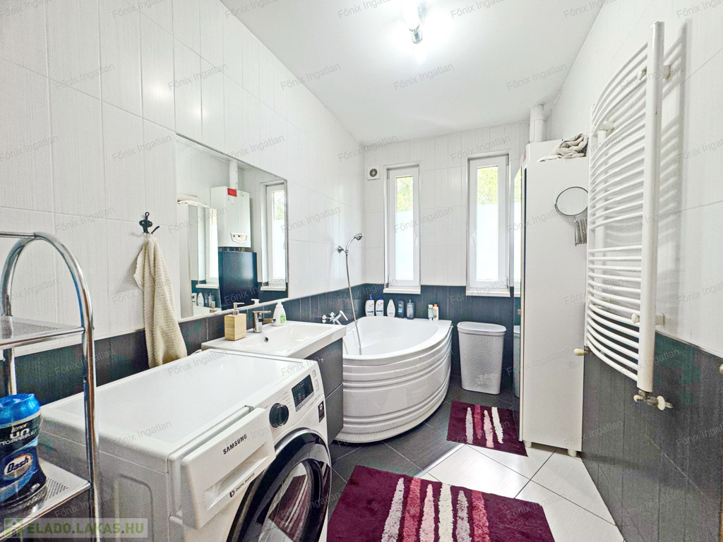 Az ingatlan homlokzata 10 cm szigeteléssel van ellátva. A gázfogyasztás 100.000. forint/év, saját kerti tároló, locsolási lehetőség, riasztó, kktg 2200 forint.