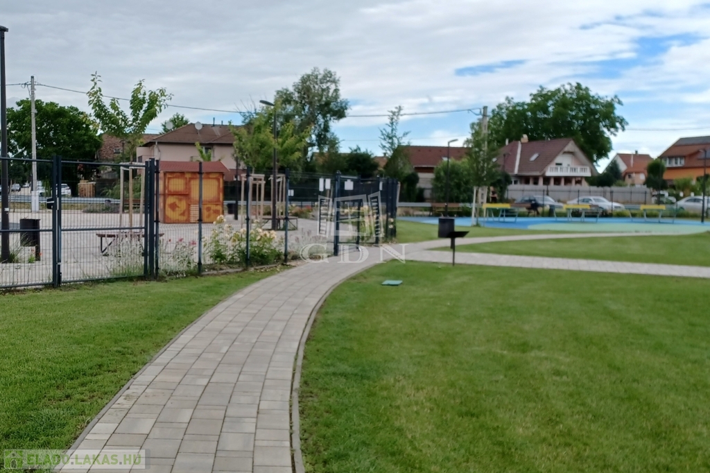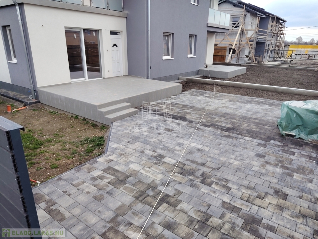 Az ingatlan bejáratát a kizárólag ehhez a lakáshoz tartozó tartozó kerten keresztül lehet megközelíteni. Minden lakás külön albetét lesz, tehát saját helyrajzi számmal rendelkeznek.