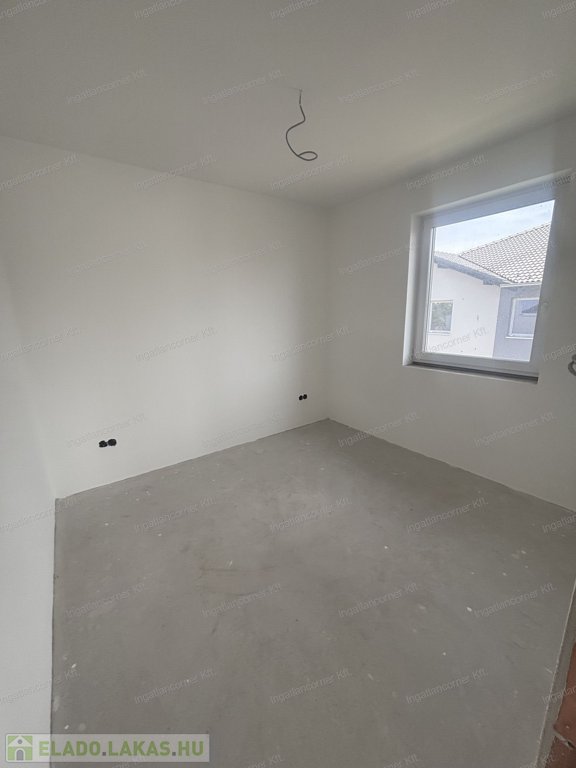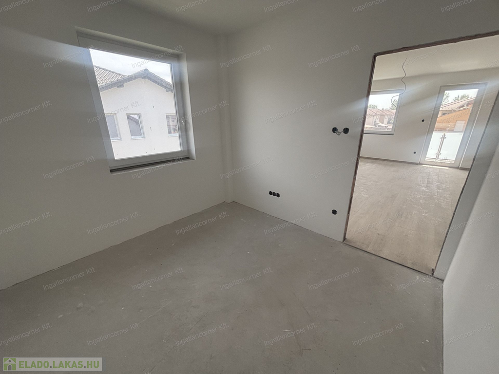 3, lakás nettó 60,77 m2 + 9,29 m2 terasz, nappali + 2 háló, 119 m2 telek, fan-coil klíma (a hálószobákban kiállás előkészítés), riasztó, kaputelefon, 2db parkoló