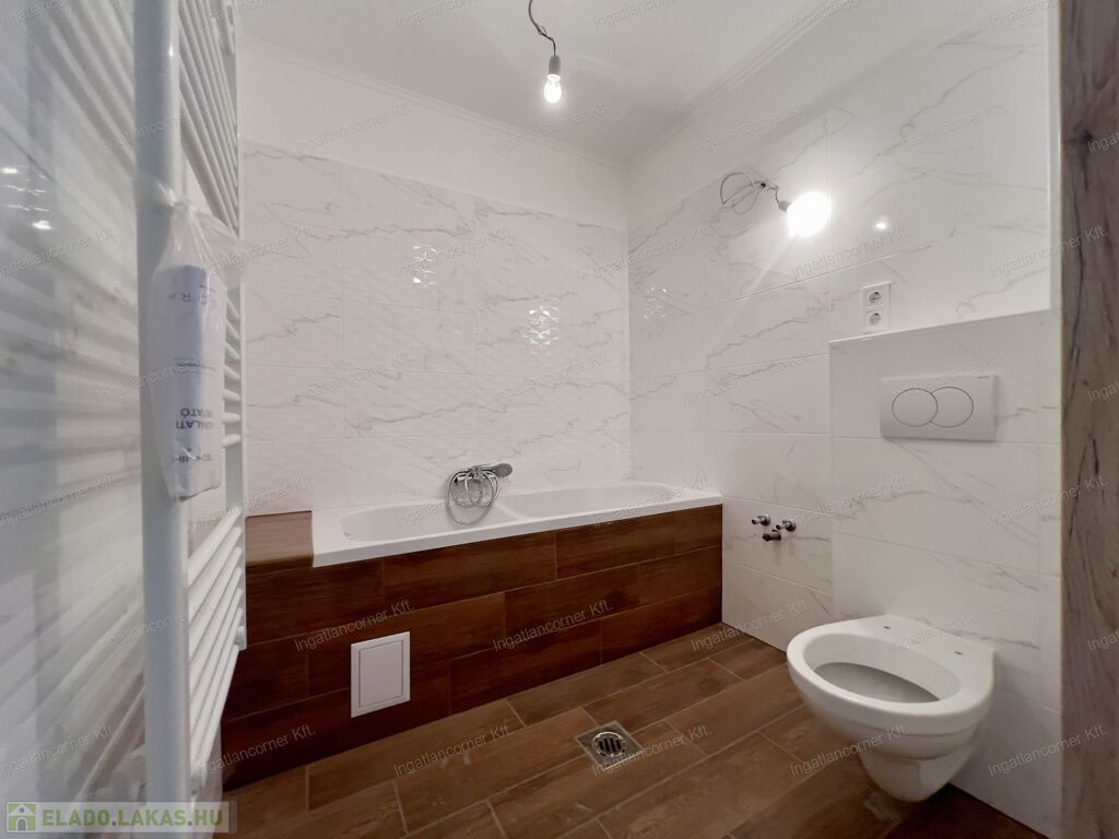 - 63 nm-es lakás: előszoba, nappali-konyha-étkező, wc, fürdő, egy 9 és egy 12 nm-es szoba, valamint 44 nm-es terasz.