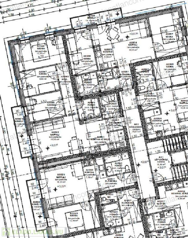 - 72 nm-es lakás: előszoba, nappali-konyha-étkező, fürdő, közlekedő, két 8 és egy 12 nm-es szoba, valamint 5 nm-es erkély.