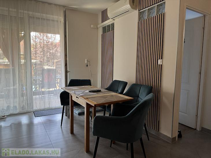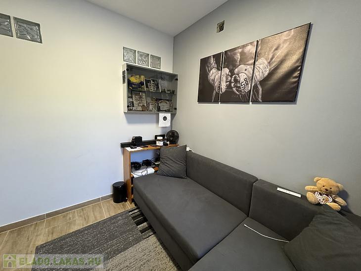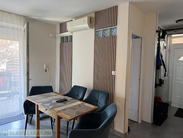 Az ingatlanhoz saját, elkerített, gondozott 30 m²-es kert tartozik, amely egy 17 m²-es teraszról közelíthető meg – kiváló helyszín lehet pihenéshez vagy kerti programokhoz.