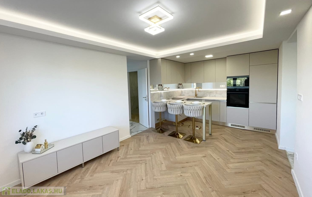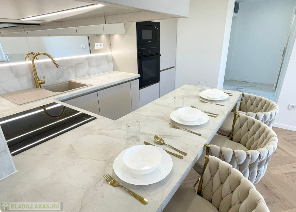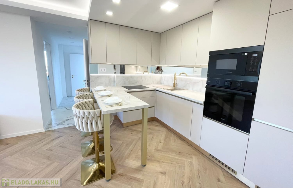 A lakás teljes körűen megújult: megtörtént a víz- és villanyvezetékek cseréje, minden burkolat, szaniter és nyílászáró magas minőségben került beépítésre. A korszerű távfűtés egyedi mérés alapján szabályozható, így a fenntartása egyszerre kényelmes és költséghatékony.