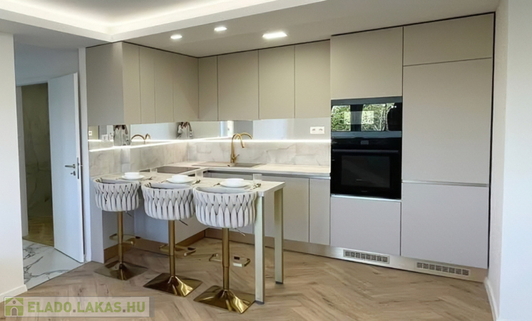 A letisztult stílusú otthon kiváló térszervezésének és természetes fénnyel elárasztott helyiségeinek köszönhetően méreténél jóval tágasabb érzetet kelt. A világos, pasztellszínek által uralt amerikai konyhás nappali, a teljesen gépesített konyhabútor, a két különálló hálószoba, a külön fürdő és WC, valamint a ritkaságszámba menő, önálló mosókonyha olyan kényelmi szintet nyújt, amely nemcsak otthonként, hanem hosszú távú befektetésként is értéket képvisel.