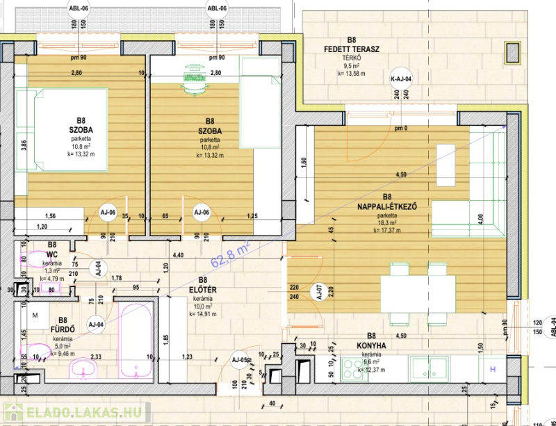 Ha a parketta helyett hideg burkolat lenne választva akkor annak a m2 plusz munkadíj és anyagköltség 18.000 Ft / m2 nettó összeg