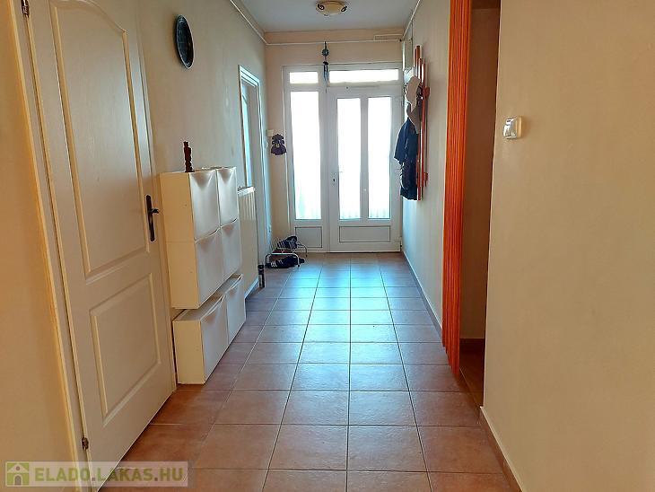 A hálószobák laminált parkettásak, a többi helyiség járólappal burkolt, a nyílászárók pedig műanyag termo üvegesek.