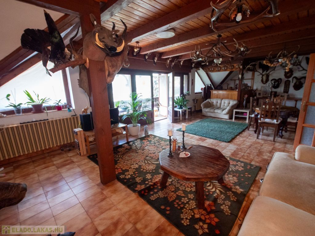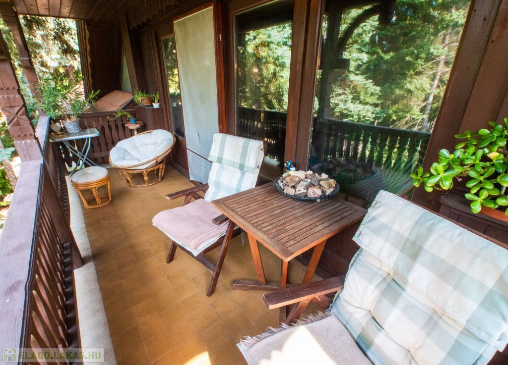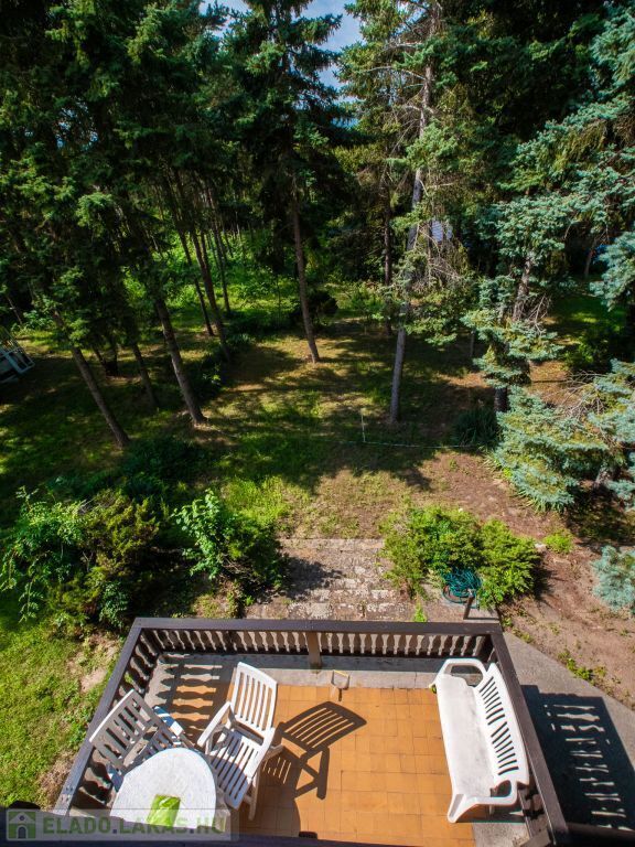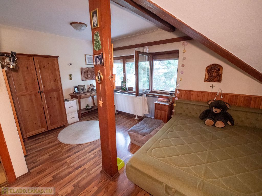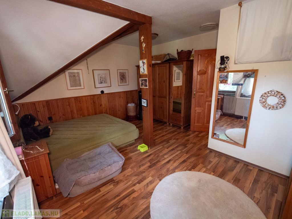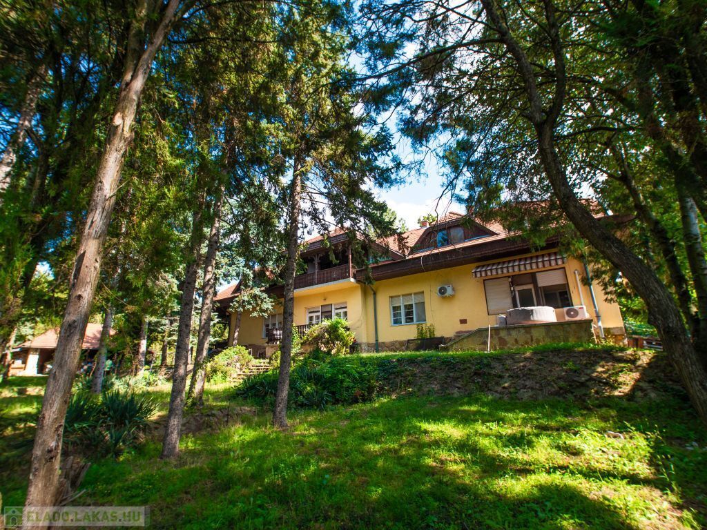 Az 1930-as években épült villaépület egy hangulatos, gondozott 2200 nm-es saroktelken található. A telekre két székelykapun keresztül jutunk be, a gépkocsik számára készült kapu távirányításos! A fákkal körbevett ház kívülről eredeti formáját megőrizte, belül viszont három önálló lakásra osztott. Ez az ingatlan a legkisebb a három lakásból, és a tetőtér kétharmadát foglalja el. A villa tetőzetét, teraszait, és lépcsőit gyönyörű famunka teszi egyedivé és kortalanná, az egész házat belengi egy erdélyi vadászház hangulata! Ebbe a lakásba egy szépen faragott falépcsőn jutunk fel, pontosabban a nyitott előtérbe és majd onnan a lakásba. A konyhából nyílik az egyik hálószoba és a folyosó, melyről nyílnak a fürdők, a másik hálószoba, és a több mint 50 nm-es nappali! Ennek erkélyéről gyönyörködhetünk a szomszéd telek ősfás fenyvesében, mely lenyúlik a Duna-partig (és szintén megvásárolható!)!