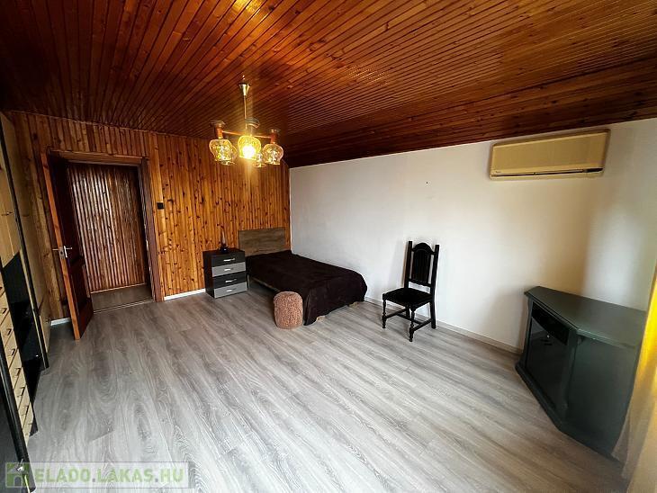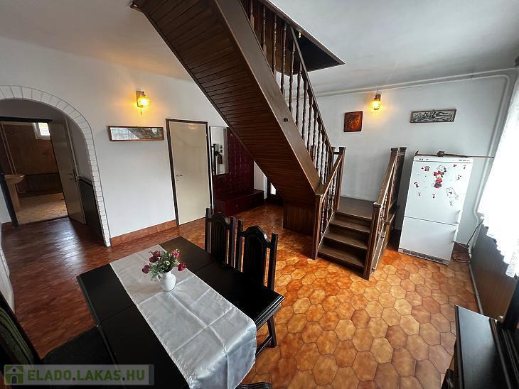 Emelet: 2 szoba, étkező, konyha, kamra, kádas fürdőszoba + mellékhelyiség, erkély.