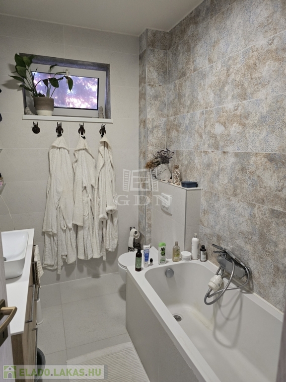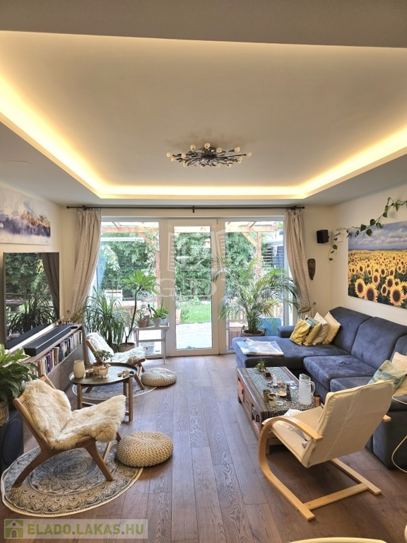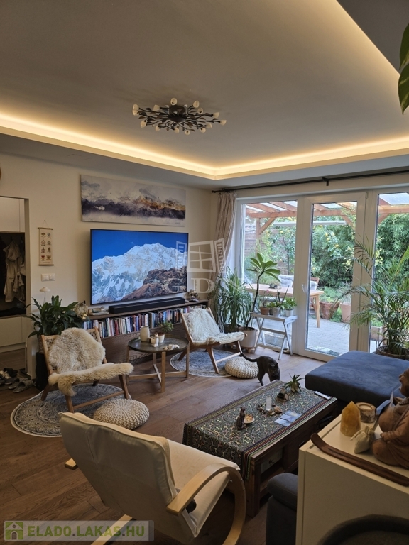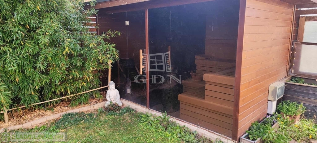 A lakás kiváló elosztással rendelkezik, meleg, déli tájolású nagy ablakokkal, fedett terasszal. Az öntözőrendszerrel kialakított kertben fatüzelésű erdélyi fürdődézsával és egy prémium kivitelezésű 6 személyes finn szaunával, a nyári madárcsicsergés mellett még a téli hétköznap esték is meghitt nyugalomban és teljes feltölődésben telnek.