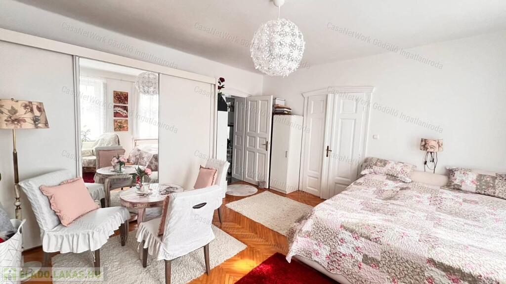 Az épület történelmet ír, a lakás megőrizte polgári jellegét nagy belmagasságával, gyönyörű eredeti fa ajtókkal, ugyanakkor harmonikus, de modern lakberendezéssel, és felújított műszaki megoldásokkal.  Két tágas szobája külön bejáratú, de átjárható egyben.  A lakás a hozzá tartozó lépcsőházból közelíthető meg. A padlástér jól használható tárolásra.