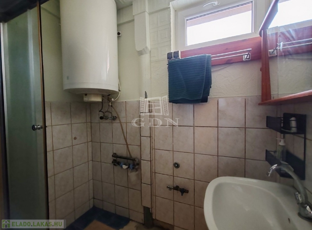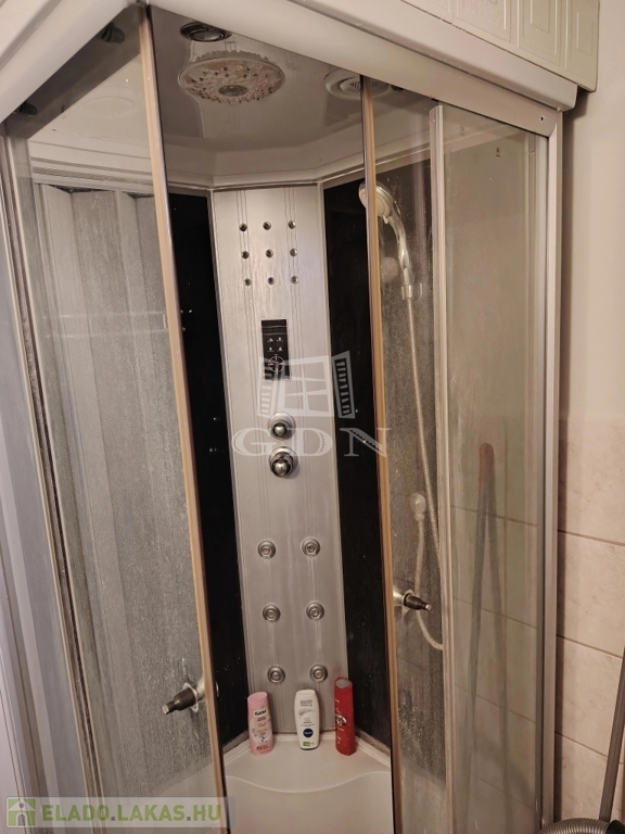 Zuhanyzós fürdőszoba, külön WC, járólap burkolattal
