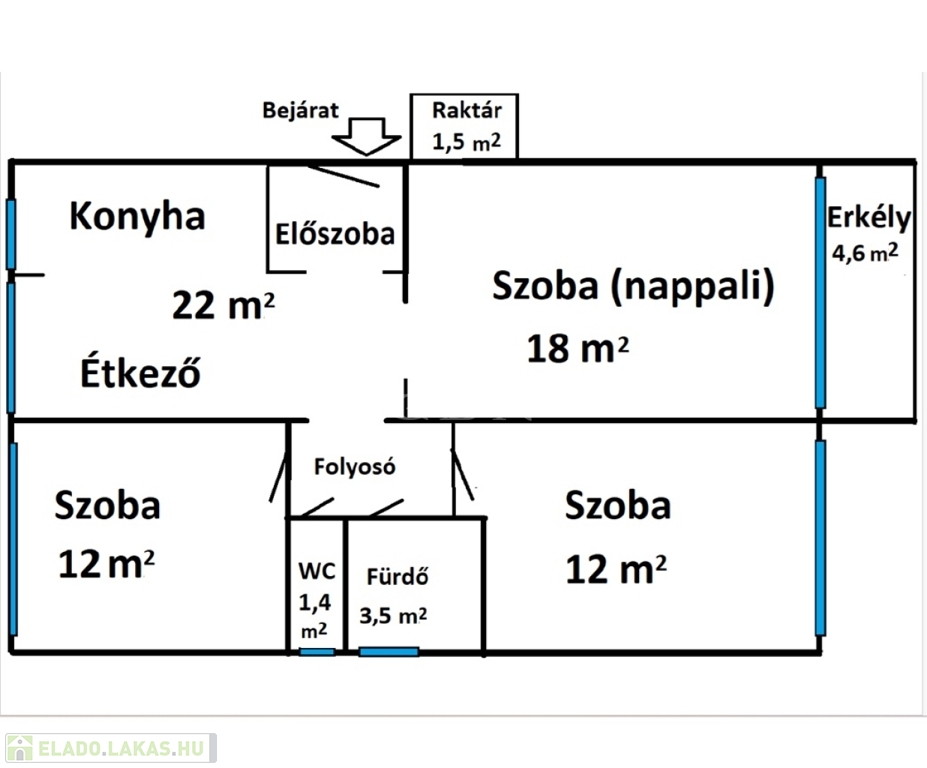 3 külön bejáratú szoba, laminált parkettával burkolva