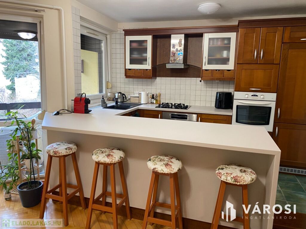 A konyha gépesített: beépített gázfőzőlap, elektromos tűzhely, szagelszívó, mosogatógép található benne.