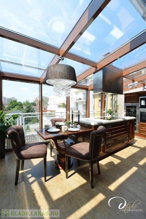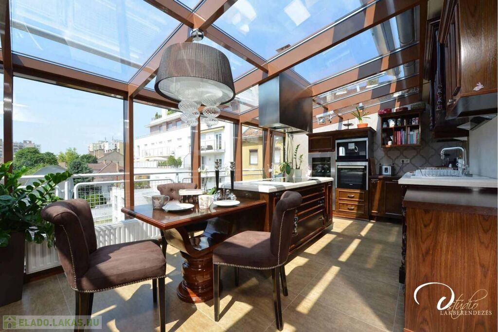 A lakás egyik legimpozánsabb része a tágas, rendkívül világos, nyugati tájolású konyha, amely egész nap kellemes természetes fényt kap. A csendes, udvarra néző, 18,5 m2-es erkély tökéletes hely a pihenésre és kikapcsolódásra.