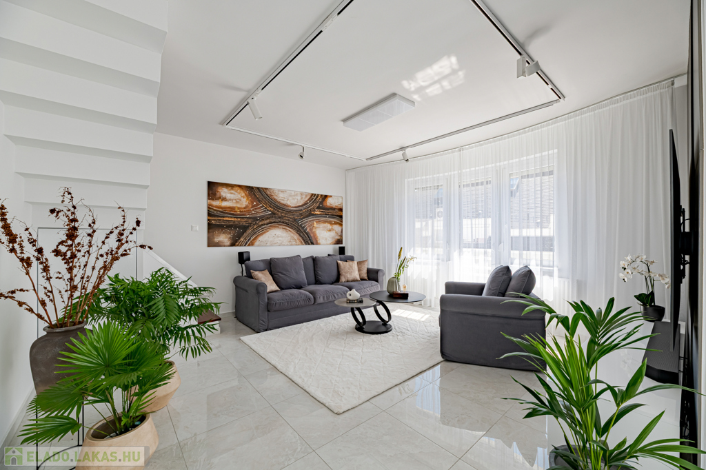 A villanykapcsolók okos-kapcsolók, a mennyezeti lámpák Philips HUE okos-lámpák, távolról is irányíthatóak. OKOSOTTHON rendszerrel felszerelve, mely Home Assistant alapú, tovább bővíthető és teljesen személyre szabható.