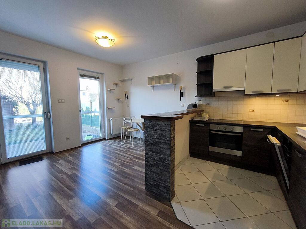 Győr Révfalu és Víziváros határán, csendes mellékutcában, kiadó egy 2013-ban épült, tégla társasház földszinti lakása.