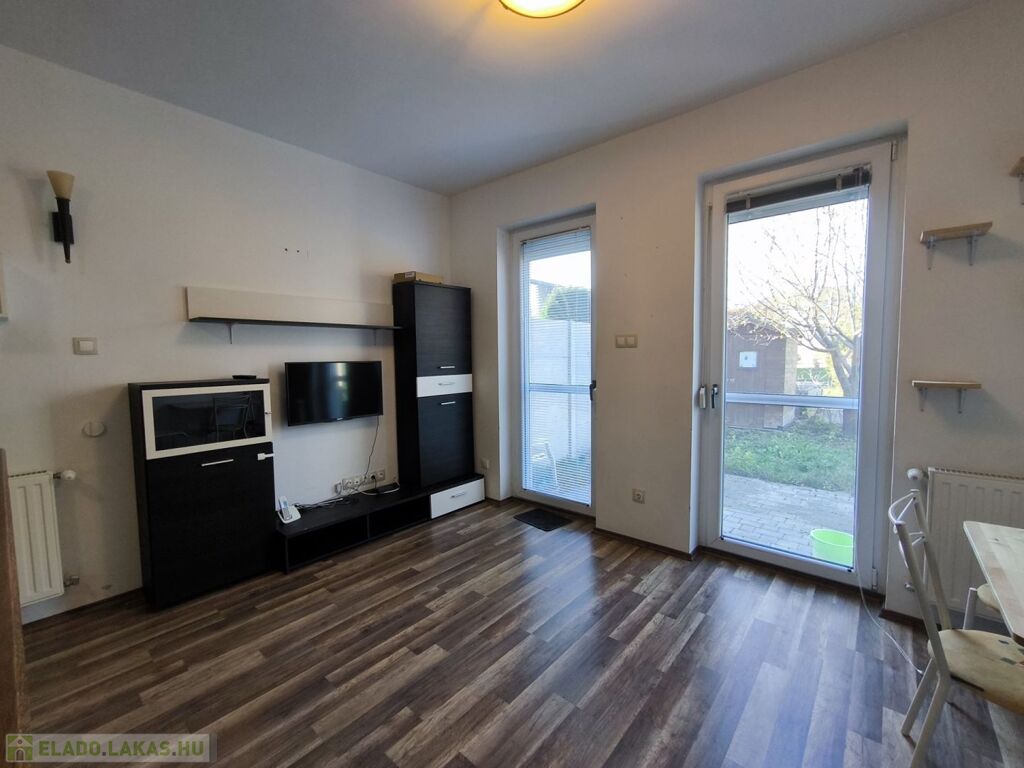 A 38 m2-es ingatlan helyiségei: amerikai konyhás nappali, hálószoba, fürdőszoba, előszoba. a lakáshoz tartozik még egy TERASZ, kerti tároló és SAJÁT KERT.