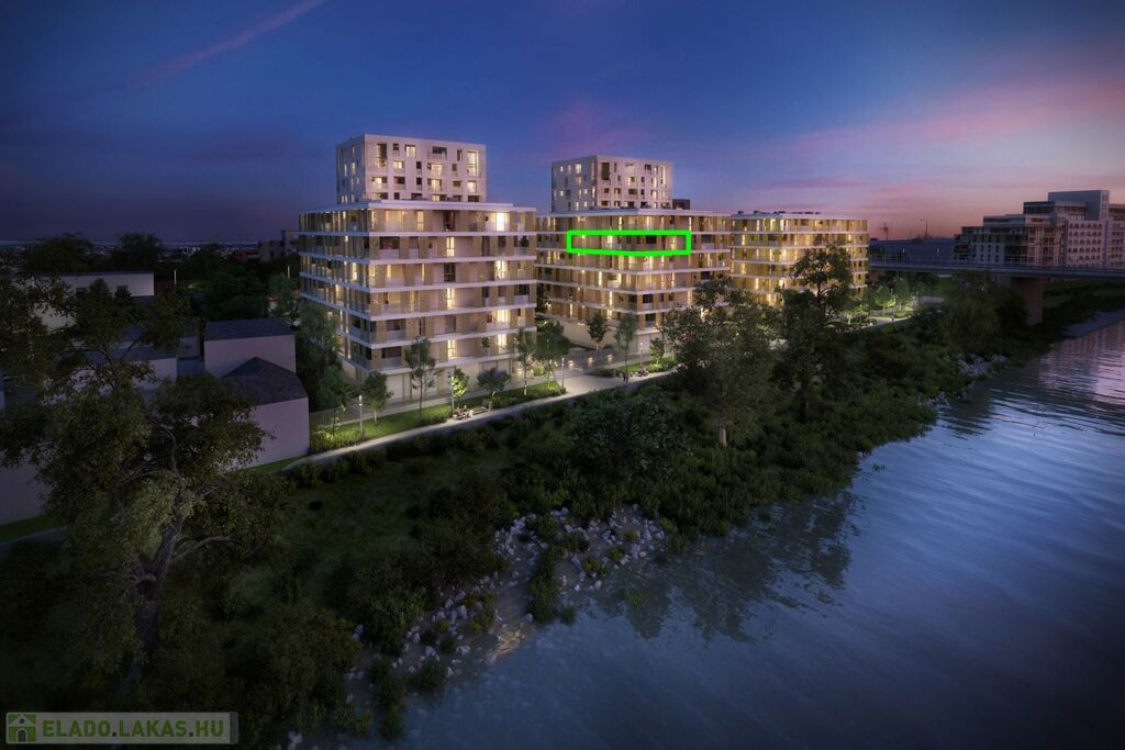 Győr egyik legjobb lokációjában, közvetlenül a Duna-parton eladó egy 97,46 m²-es, nappali + 3 szobás lakás, 14,72 m²-es erkéllyel, két darab teremgarázs beállóval és egy tárolóval.