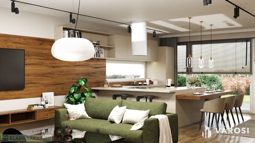 A hirdetésben szereplő látványtervek jól mutatják, milyen otthonosan berendezhető, jól élhető lakás lesz belőle.