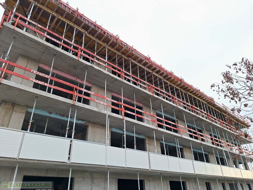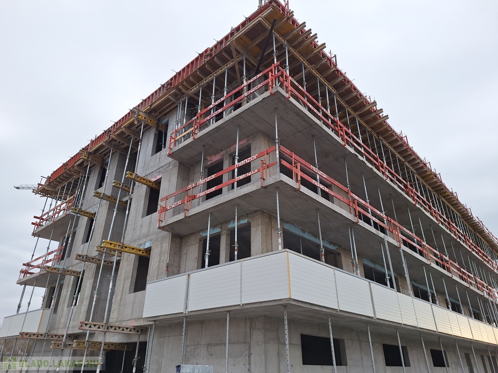 Az építkezés már folyik, a szintek már állnak, 42 lakás kerül kialakításra ebben a szárnyban.