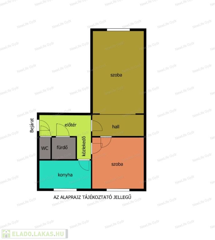 - 2 szoba + hall,