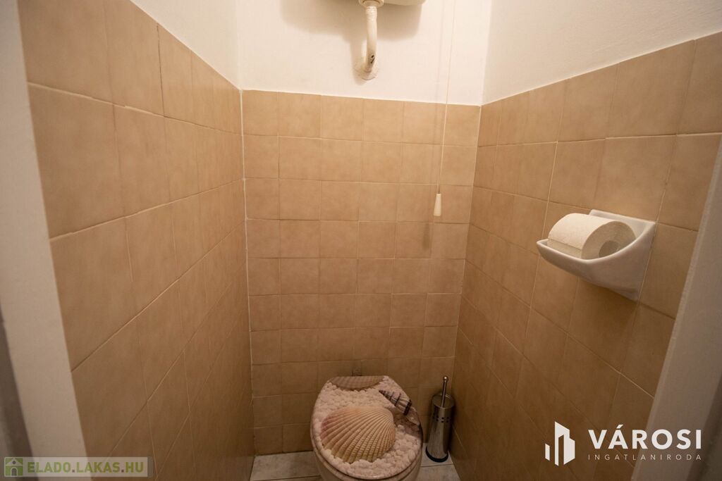 - Beépített szekrények a közlekedőben, melyek sok pakolóhelyet biztosítanak, fürdőszoba külön wc