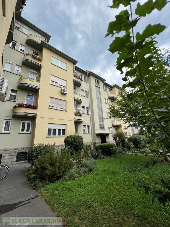 Győr-Belvárosának rendkívül kedvelt részén, Baross úttól, Széchenyi tértől pár perces sétatávolságra, a Munkácsy Mihály úton, rendezett, zárt belső udvarral, kerttel rendelkező, hangulatos, liftes társasház 1. emeletén, konyha – étkező + nappali + 1 hálószobás, továbbá különálló fürdőszobával, különálló WC-vel, különálló kamrával, 2,73 m2-es ERKÉLLYEL felszerelt, 55 m2 hasznos alapterületű, alacsony rezsijű téglalakás, saját 3,4 m2-es TÁROLÓVAL, Zsinagógára való rálátással eladó.