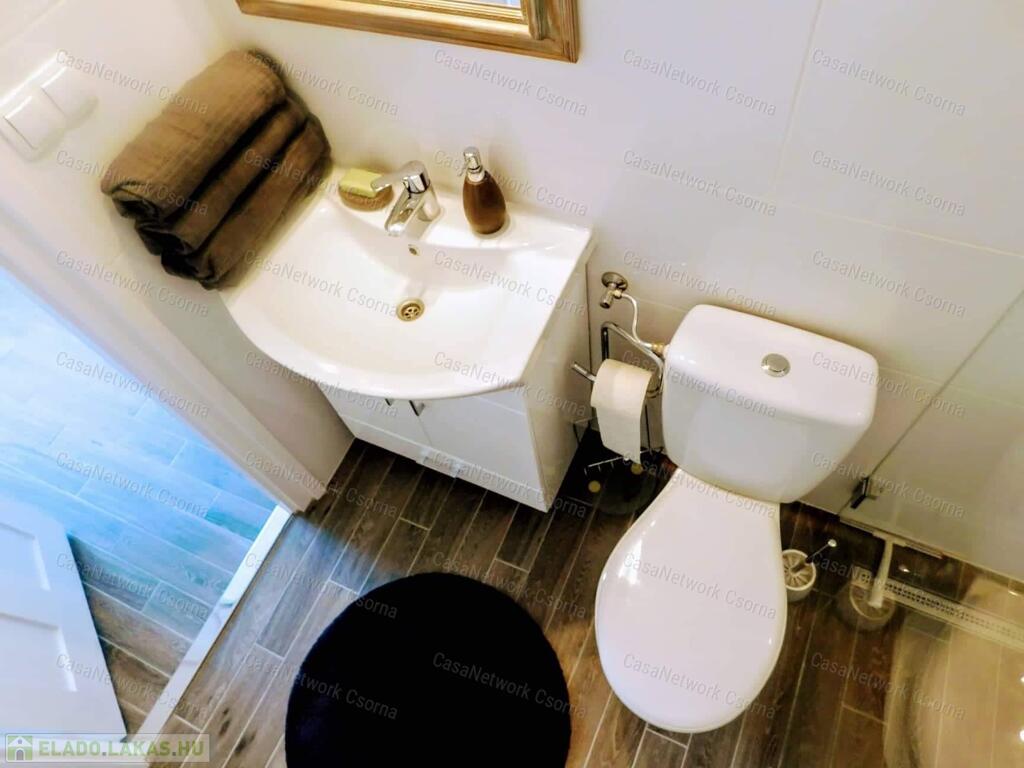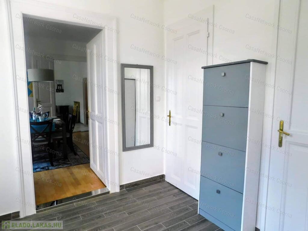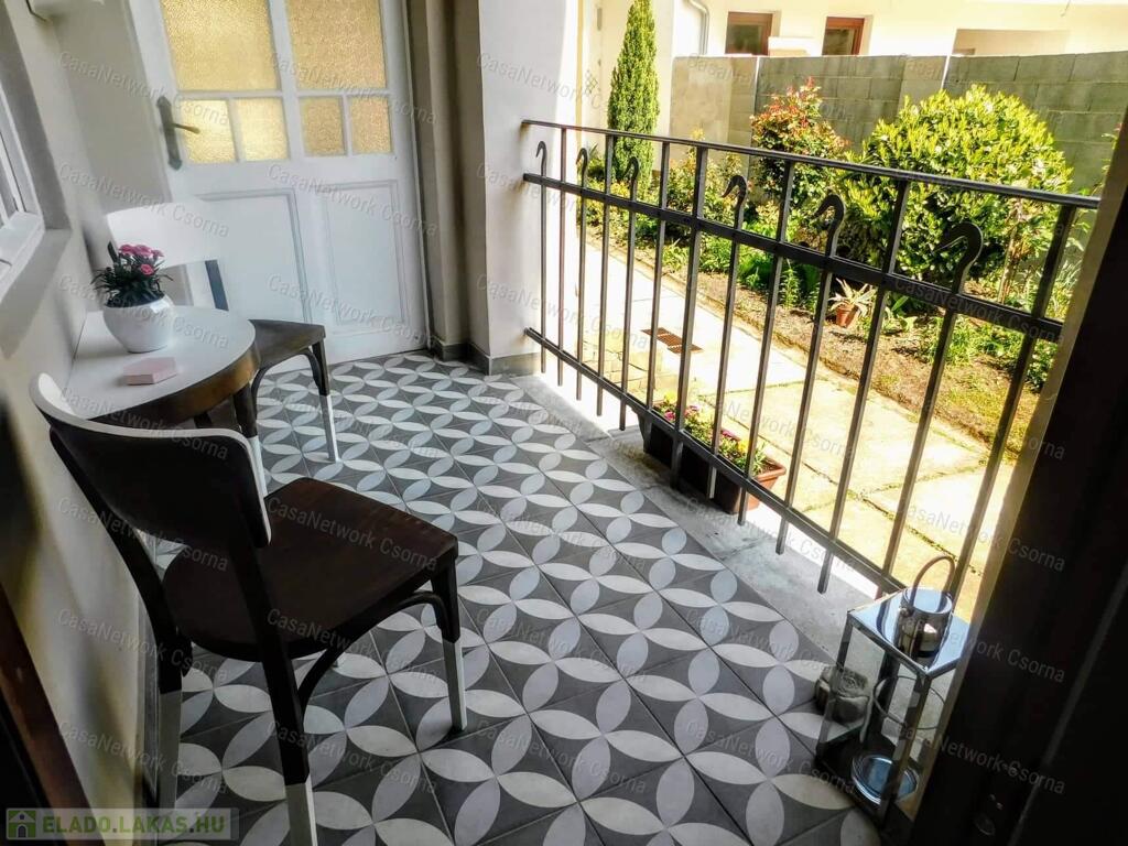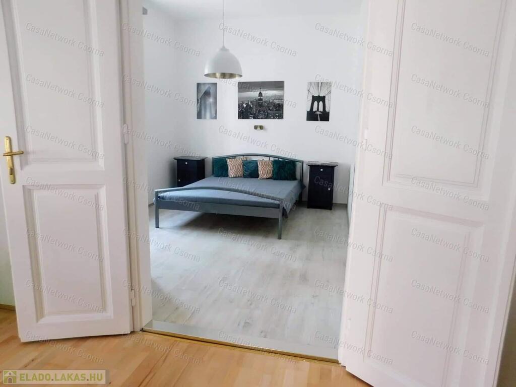 Győr szigetben, a Bercsényi liget 52. szám alatt, öt lakásos társasházban alacsony rezsijű, földszinti, téglaépítésű 74 m2-es polgári lakás eladó. Az ingatlan rendkívül jó alaprajzi elrendezésű. A lakás egy a lépcsőházból nyíló lakáshoz tartozó gangról nyílik. Egy amerikai konyhás nappali, két hálószobából, egyik hálószobából nyíló gardróbból, egy zuhanyzós és wc-t is tartalmazó fürdőből és egy különálló wc -ből áll. A fürdő és a wc ( light hof ) légudvarra szellőzik. A meleg vízről és a fűtésről radiátoros hőleadók és egy kondenzációs gázkazán gondoskodnak (saját bélelt kémény). A 2020 - ban történt teljeskörű felújítás során kismértékben az alaprajz is, valamint a teljes gépészet, a villany, víz, és gáz vezetékek kicserélésre kerültek. Természetesen a közművek felújításán túl az összes burkolat is megújult.A pincében külön 15 m2-es saját tároló, padlásrész. Parkosított, zárt belső udvar.Belváros, egyetem, élményfürdő, bevásárlóközpont karnyújtásnyira találhatók. Kiváló lakóközösség.Amennyiben bármilyen kérdés felmerül, szeretne meggyőződni róla, hogy milyen szép, kultúrált hívjon bármikor.Simon Kázmér 30 216 5557