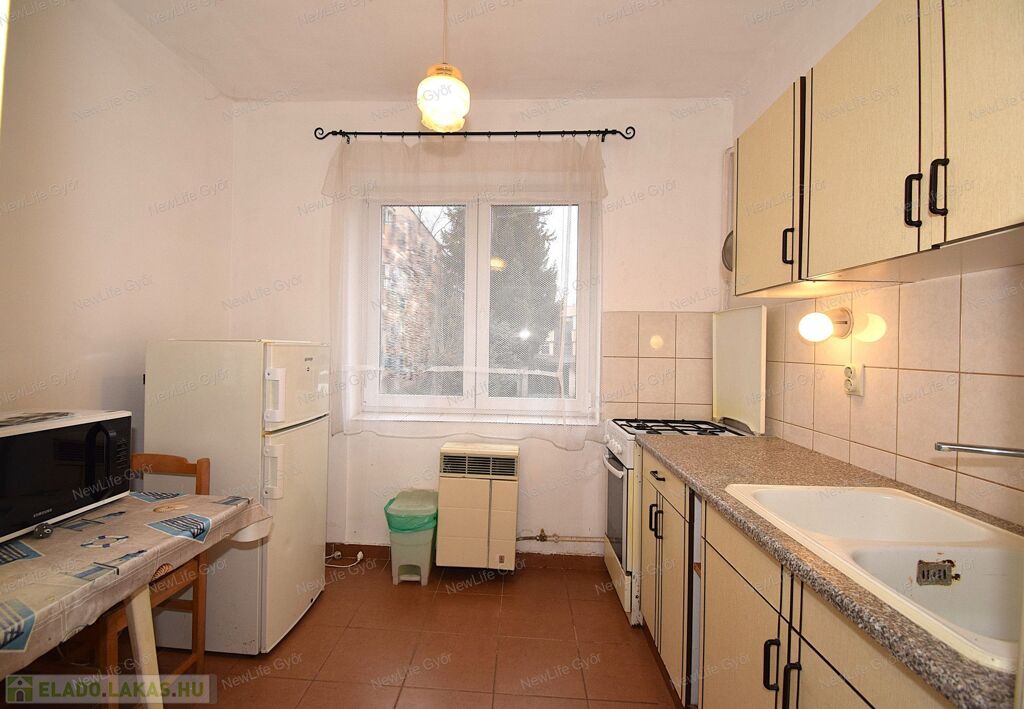 Győr, Víztorony utcában, a Széchenyi Egyetemtől 3 percre eladó ez az 51 m2-es, földszinti modernizálásra szoruló téglalakás.