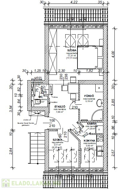 Szoba, étkező, külön konyha, kamra, közlekedő, dolgozószoba/gardróbhelyiség,