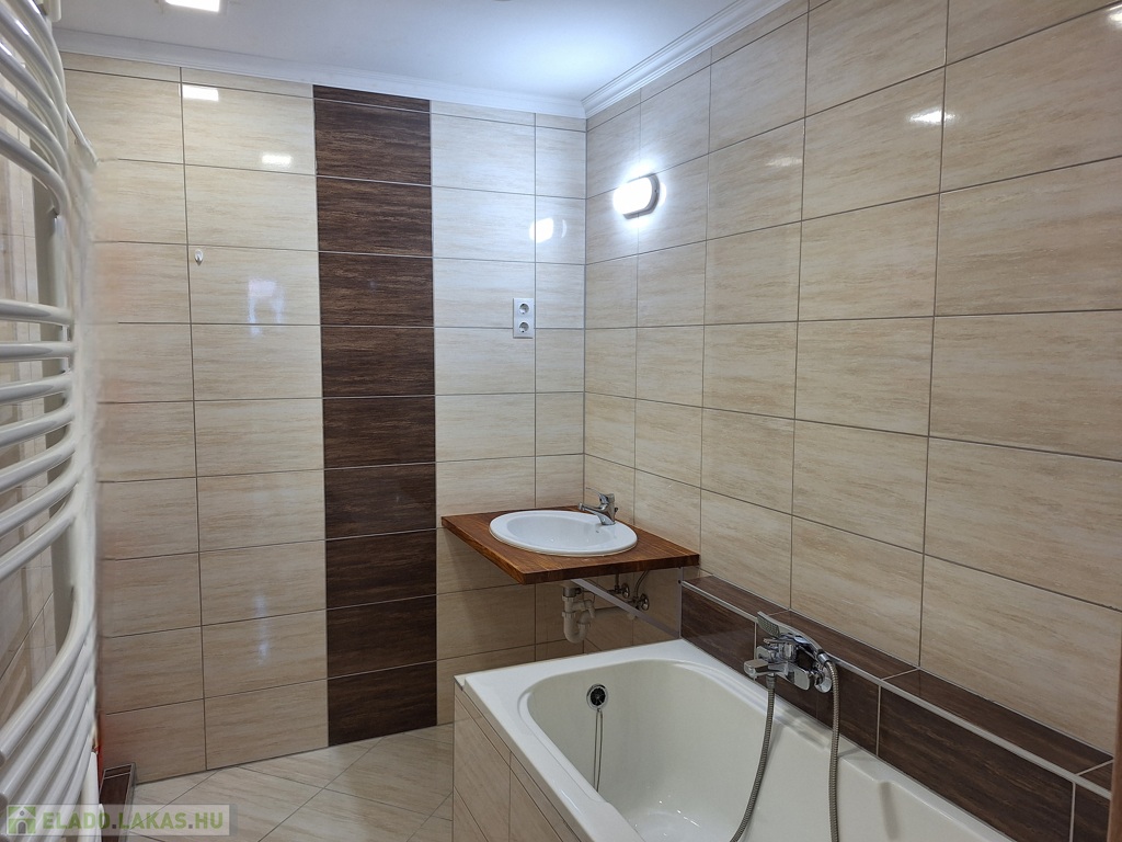 A fürdőszobában kád és zuhany egyaránt megtalálható.