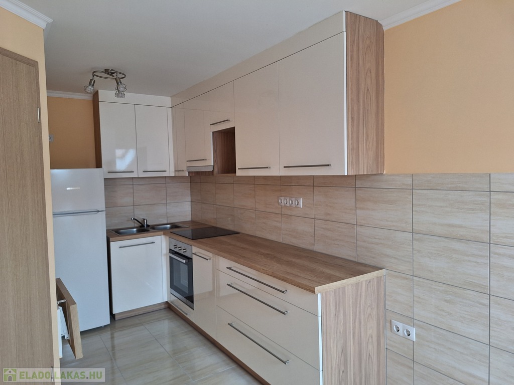 A konyhában, beépített, gépekkel felszerelt konyhabútor található. Igény esetén a hűtőszekrény is maradhat. A konyha mellet egy kis kamra is helyet kapott, mely tárolásra remek lehetőséget nyújt.