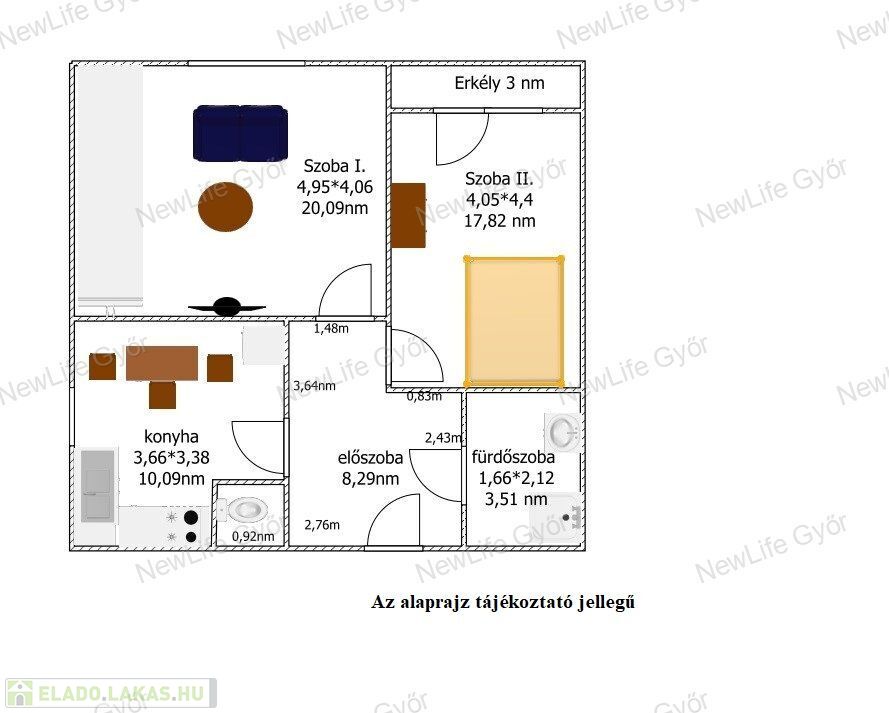 A lakásban két teljesértékű nagy szoba került kialakításra, az egyik szobához erkély is tartozik.