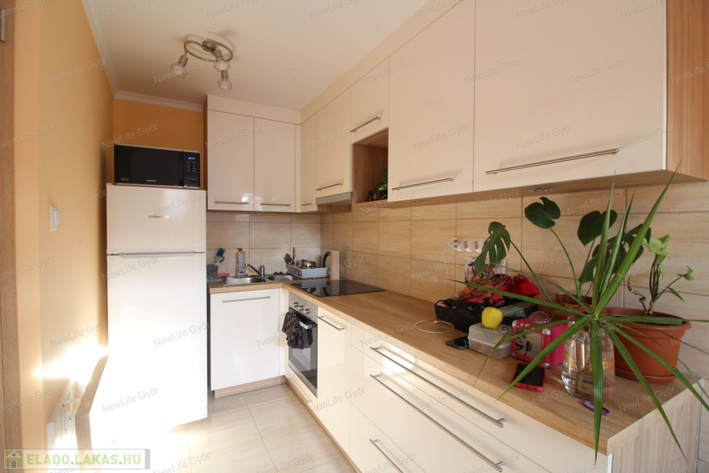 Győr-Szabadhegyen, a József Attila frekventált, központi részén, csendes belső udvaros környezetben, 9 lakásos társasházban rendkívüli jó adottságokkal rendelkező, 2. emeleti, bruttó 66,5 m2-es, nappali + 2 szobás lakás eladó.